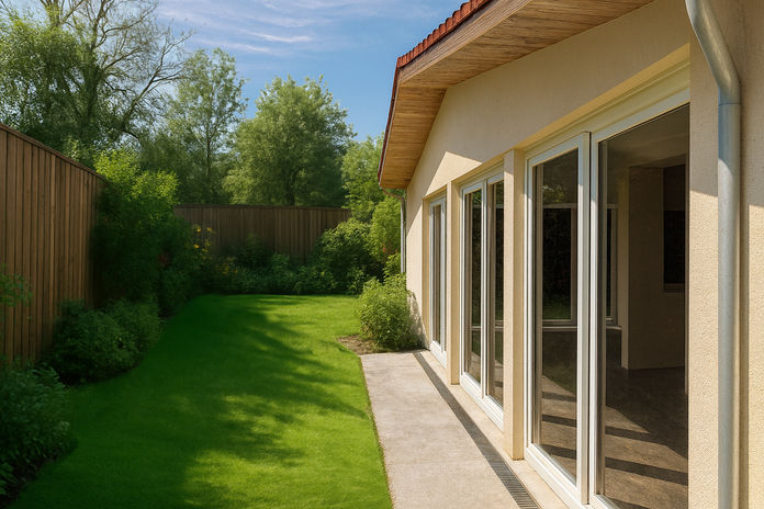 ![]() Vue depuis le jardin | ![]() Extension terrasse | ![]() Rue |